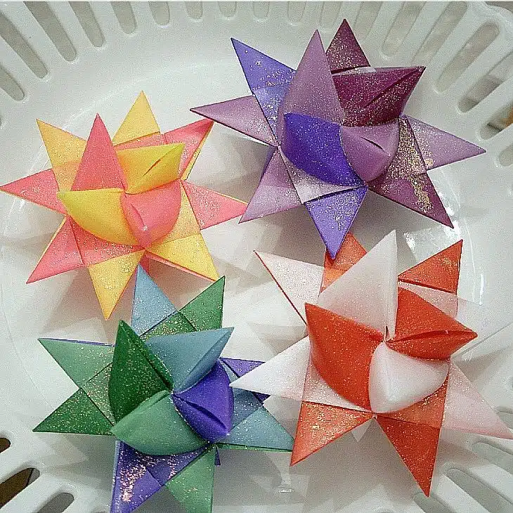 Join us for a class on making German stars for the holidays. For ages paper stars were made around the holidays to hang from the Christmas tree. They have been called German stars, advent stars, Nordic stars, Swedish stars, Froebel stars or Danish stars. They are made by folding paper strips which are available in many colors to coordinate with many occasions, They are also unique as gift tags and shower and wedding favors. These 3D stars can be decorative and a lasting memento. $20pp